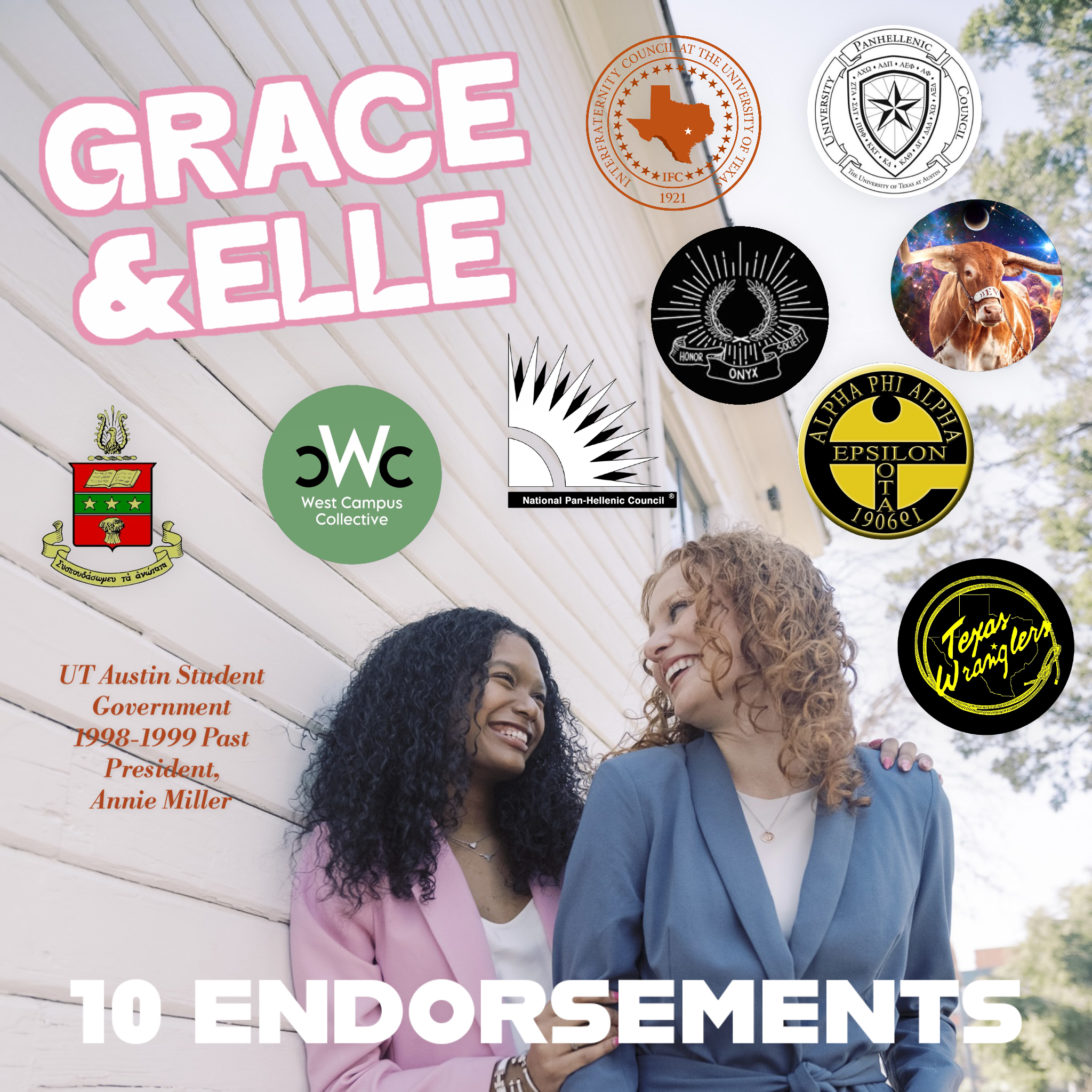 In Spring 2024, I served as the Public Relations Lead for Grace Kelly and Elle Grinnell’s executive alliance campaign for UT Student Government President and Vice President. The campaign centered on clear messaging, strategic outreach, and high-impact student engagement.